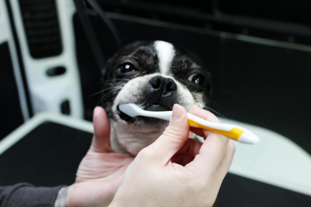 Soft-bristled toothbrushes designed for pets are used to brush their teeth gently and remove plaque and tartar buildup. - We also use the oral jel if dogs are not allowing us to brish their teeth